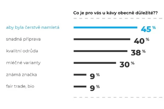 Alfou omegou je pro 45 % dotázaných to, aby byla káva čerstvě namletá. (V jednoduchosti je krása, nemyslíte?)